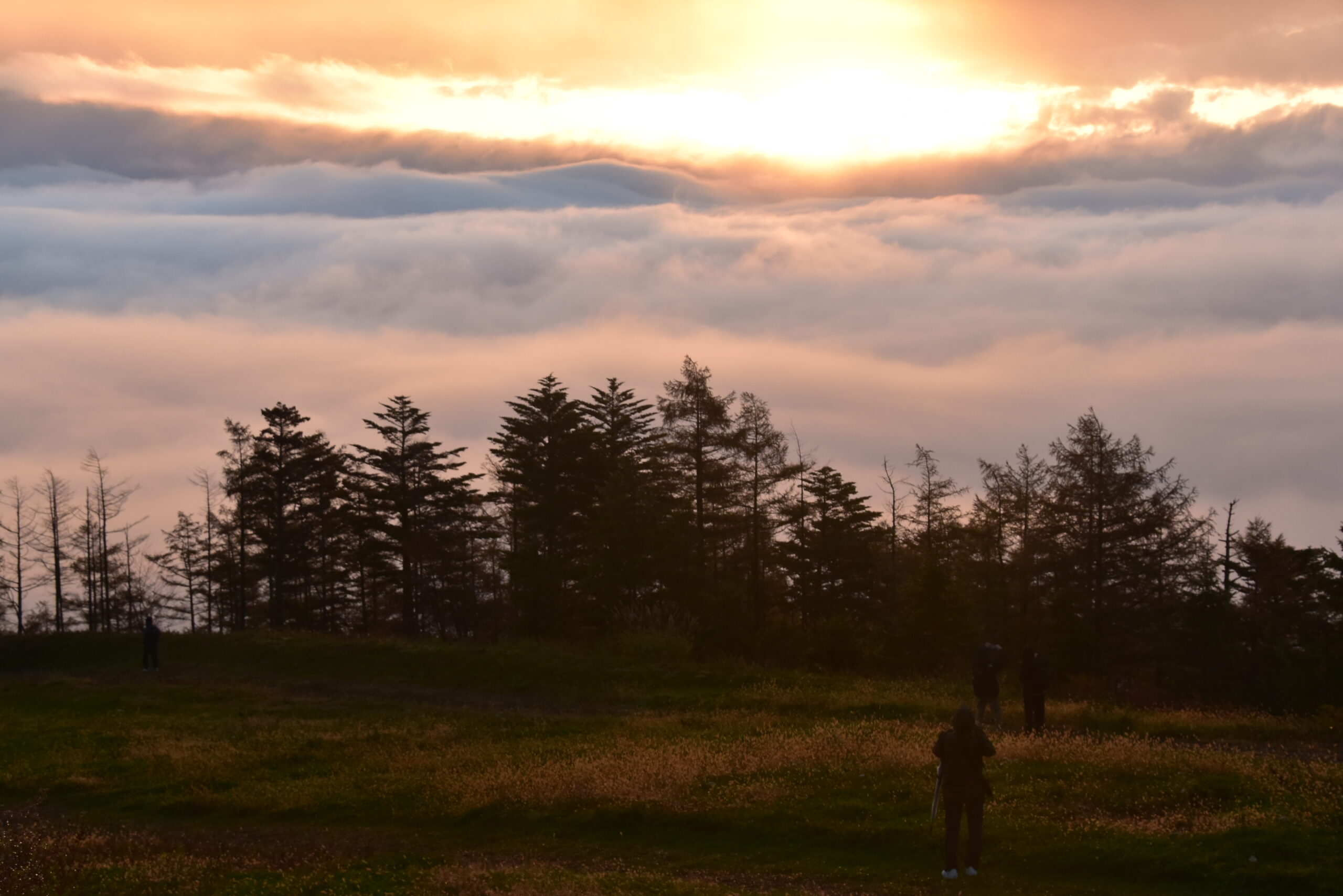 夜明け前の山頂は真っ白な霧。視界ゼロで今日の雲海は危ぶまれましたが、やがて雲が切れ、裂け目から朝日が差し込みました。 光の帯が雲を金色に染める瞬間、何度見ても息を呑む景色です。 今日は“雲の海”というより、まるで広大な雲 […]