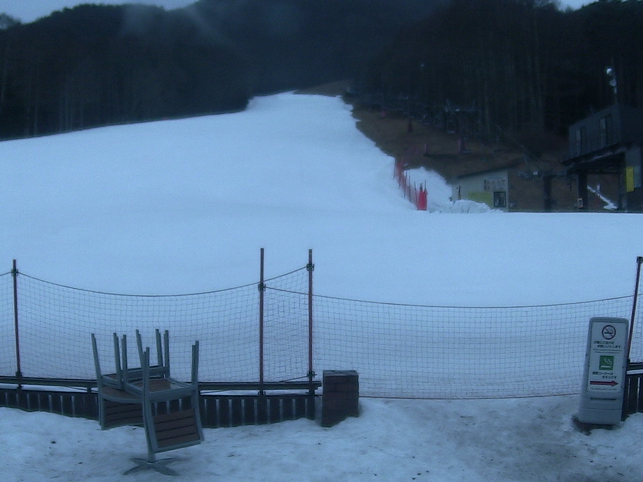 現在周辺道路に積雪はありません。朝晩に凍結の恐れがありますので冬用タイヤやチェーンをご利用のうえお越しください。また場内では指定のスペースに駐車をお願いいたします。