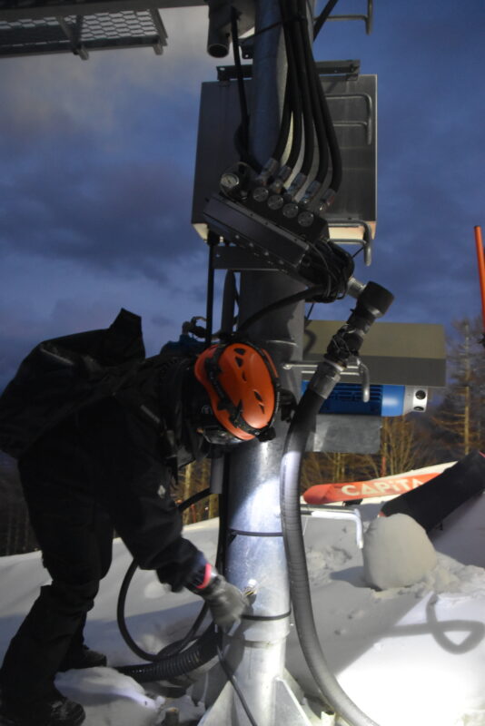 シーズン最後まで最高の滑走を。夜の静寂に響くスノーマシン
