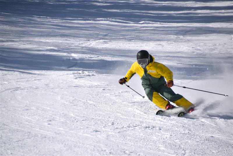 エッジがきれいに噛み、ターンのたびに心地よい雪煙が上がります。