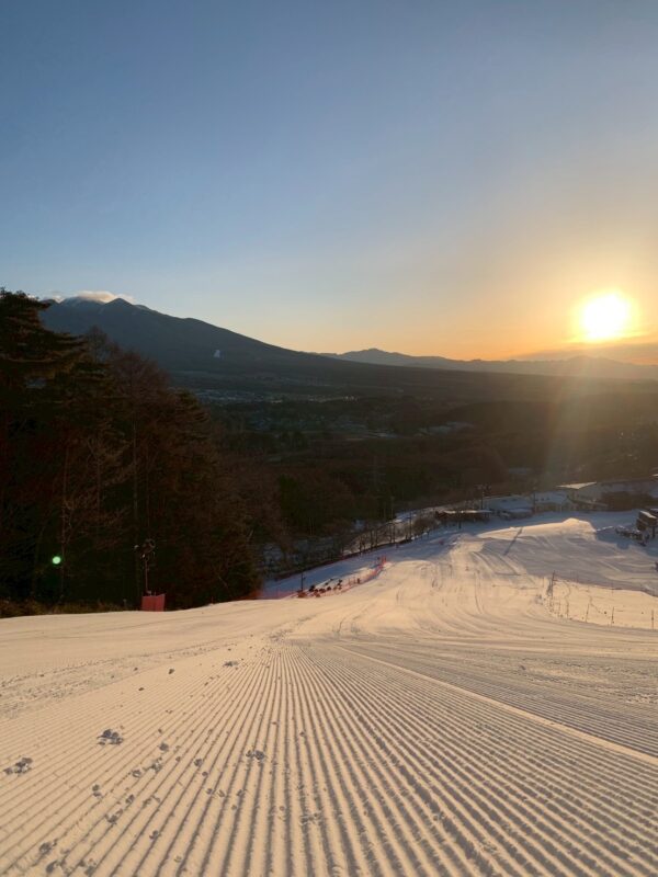 朝の澄んだ空気、整ったバーン、そして青空の下での滑走。