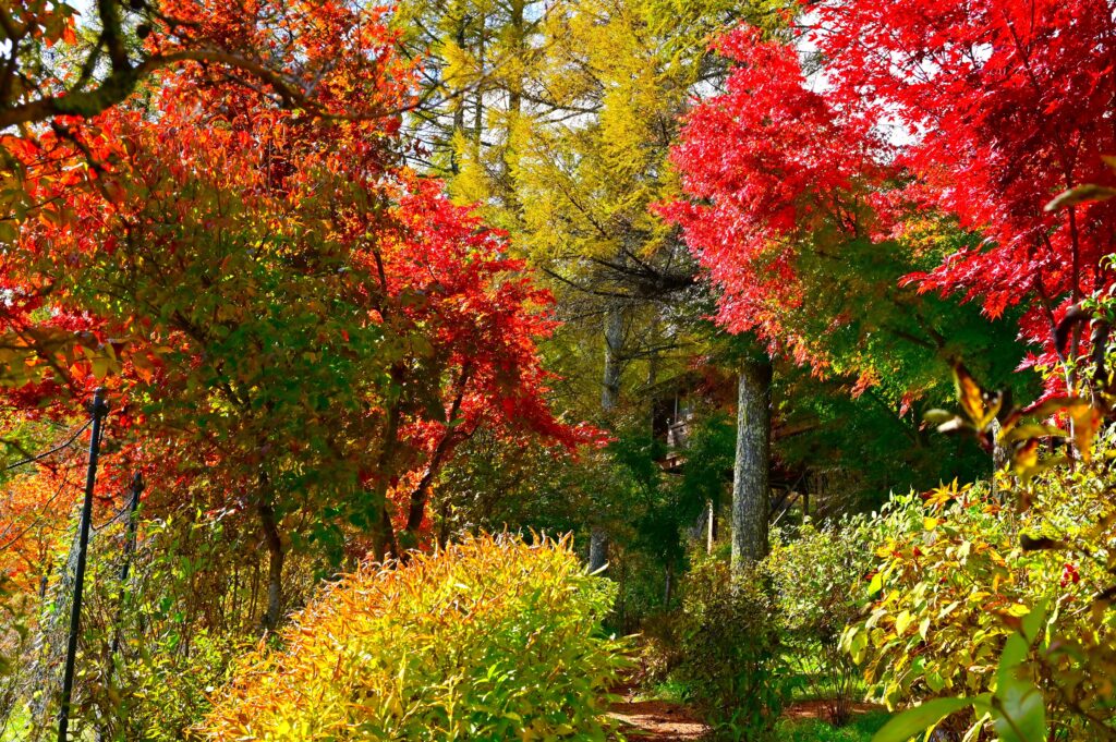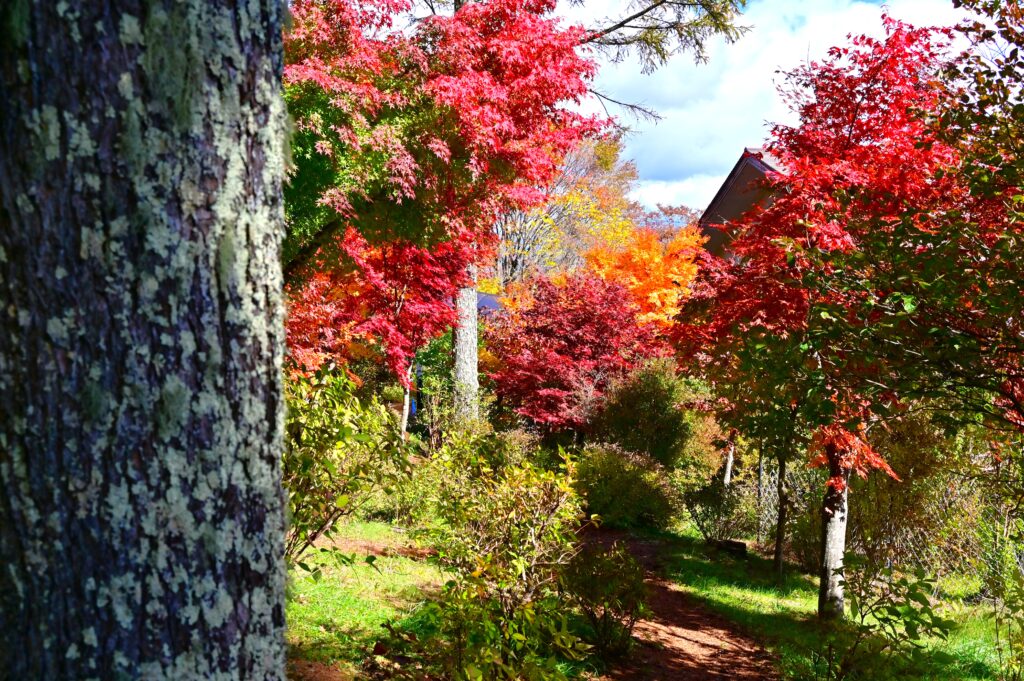 【八ヶ岳ブルーと山アジサイ小径に染まる秋】