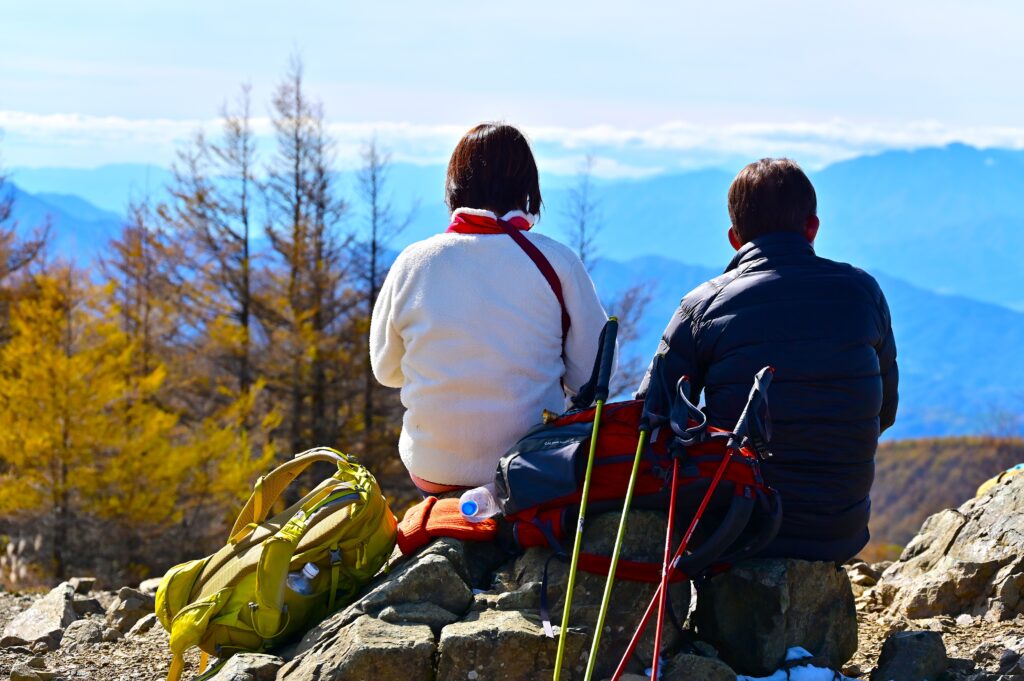 入笠山頂上に足を踏み入れた瞬間、360度の青空と八ヶ岳や北アルプスの雪景色に目を奪われてしまいます。こんなにも自然な色彩を目にできるなんて!と思わず口にしてしまいます。