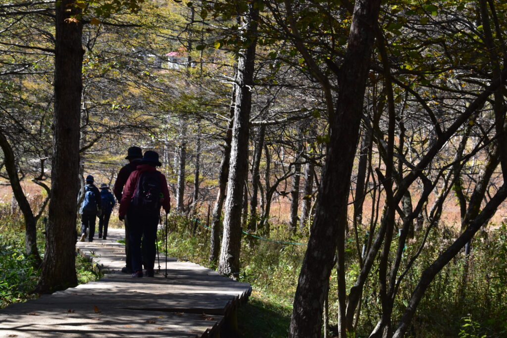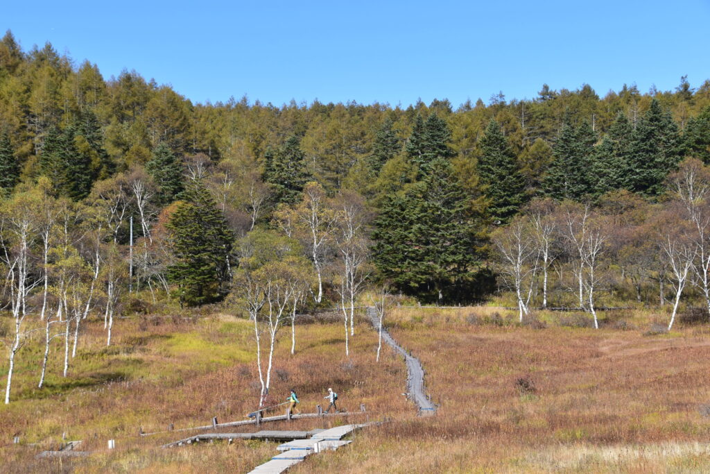 木々の合間を抜けて広がる湿原の草紅葉は、まさに秋の醍醐味。