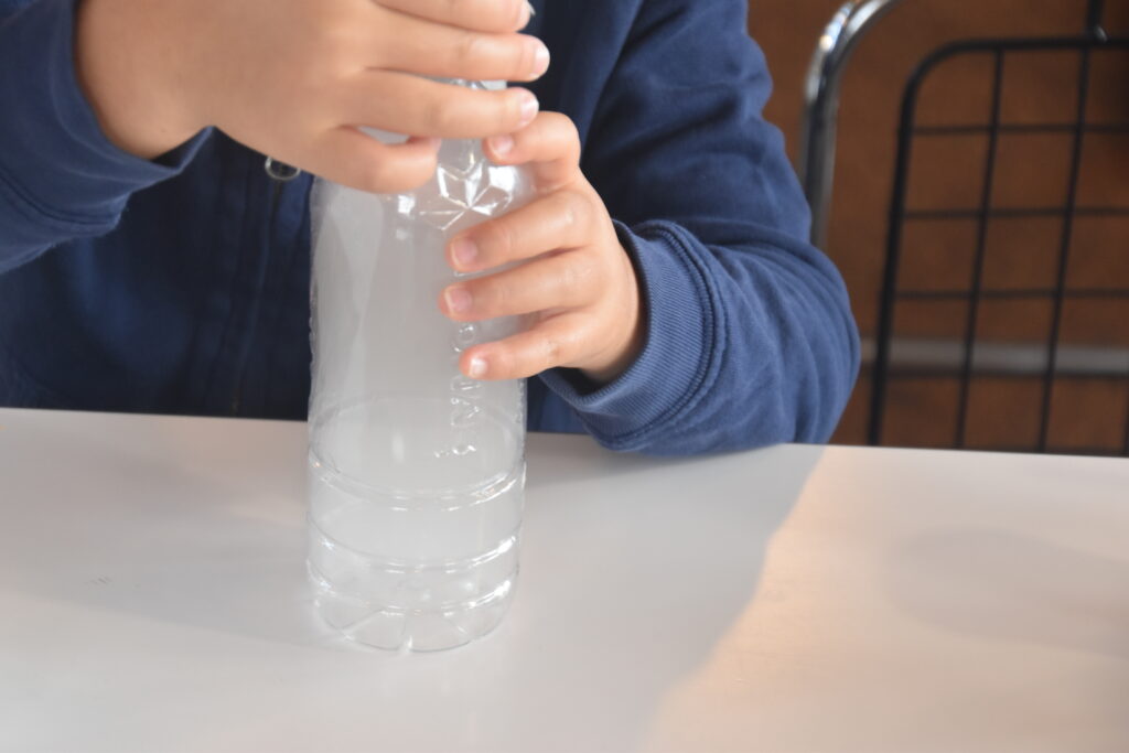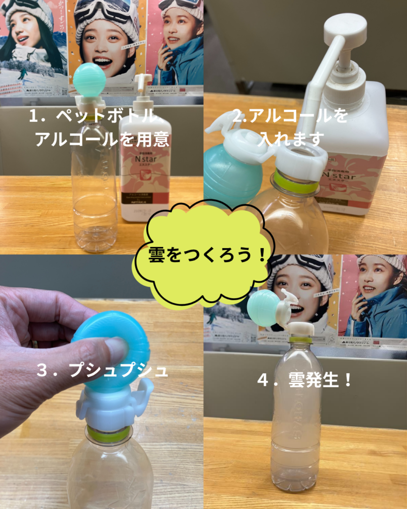 ペットボトルの中に自分だけの雲を生み出して、笑顔を弾けさせていました。