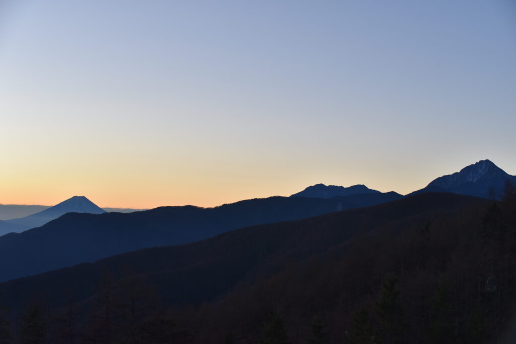 遠くには富士山と北岳もシルエットで姿を見せており、澄んだ空気ならではの見え方でした。