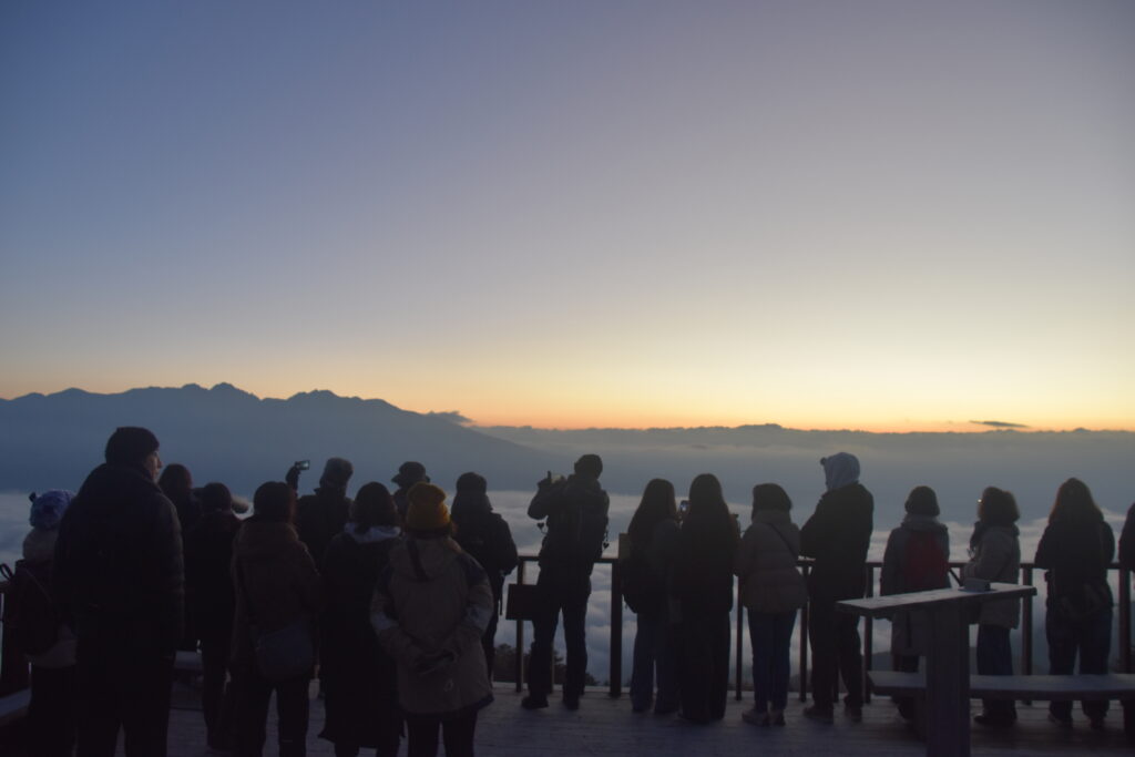 ご注意: 気象条件により雲海が発生しない場合もございます。また、山頂部は0度以下に冷え込むことがあるため、暖かい服装でお越しください。