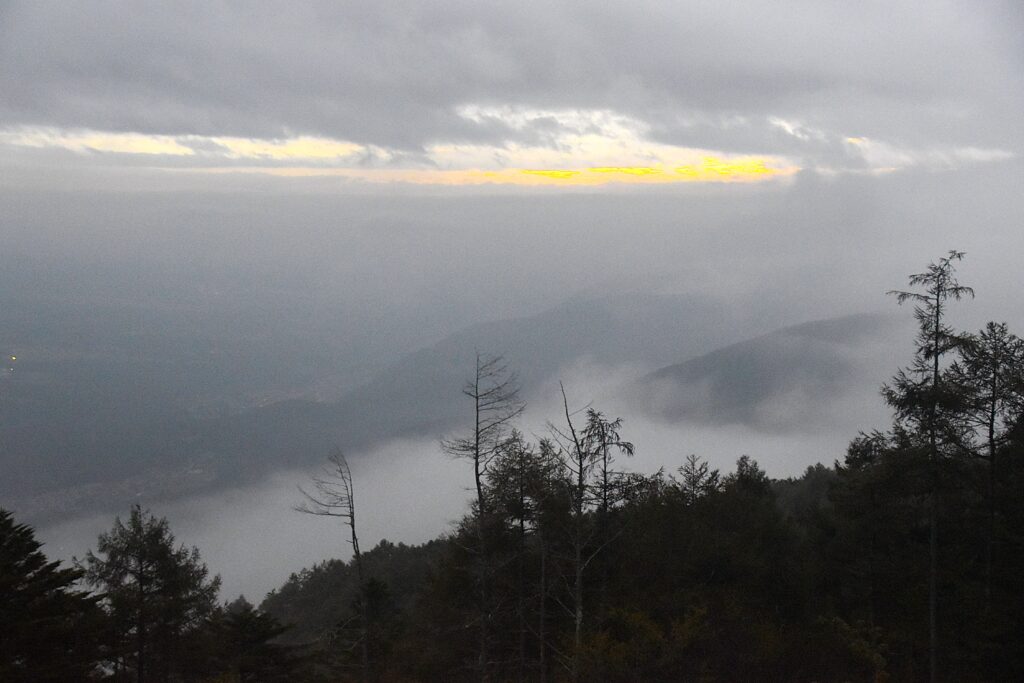 山頂駅に着くと、山梨方面から富士見町にかけて幻想的な薄い雲海の広がり。
