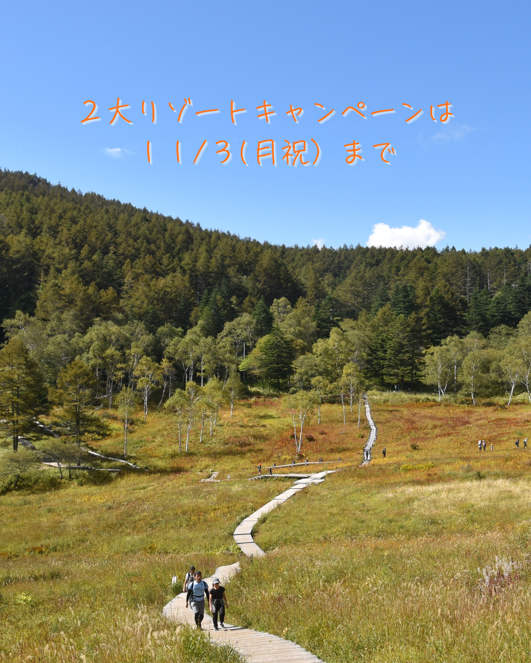 大変好評でありました2大リゾート無料キャンペーンは11月3日(月)をもちまして終了させていただきます。 期間中大変多くのお客様にご来場いただき心よりお礼申し上げます。 富士見町へのまたのお越しを心よりお待ちしております。 […]